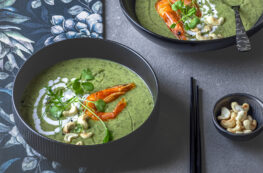 Существует множество вариантов, с добавлением сливок или греческого йогурта. Я использовала классический йогурт с низким содержанием жира, который придаёт блюду кислинку и смягчает сладость гороха. Его текстура кремовая и бархатистая, что делает приятным каждый глоток.