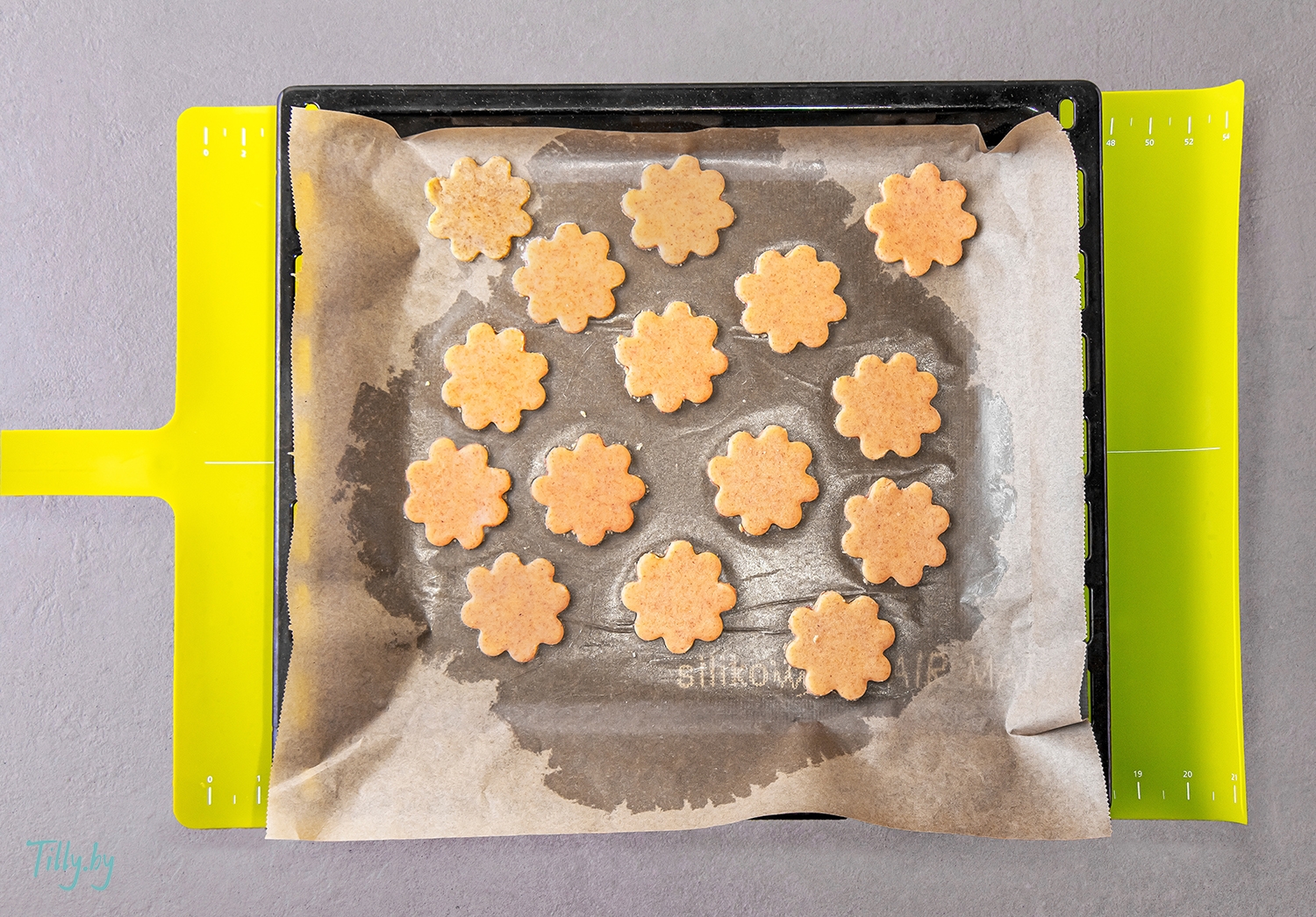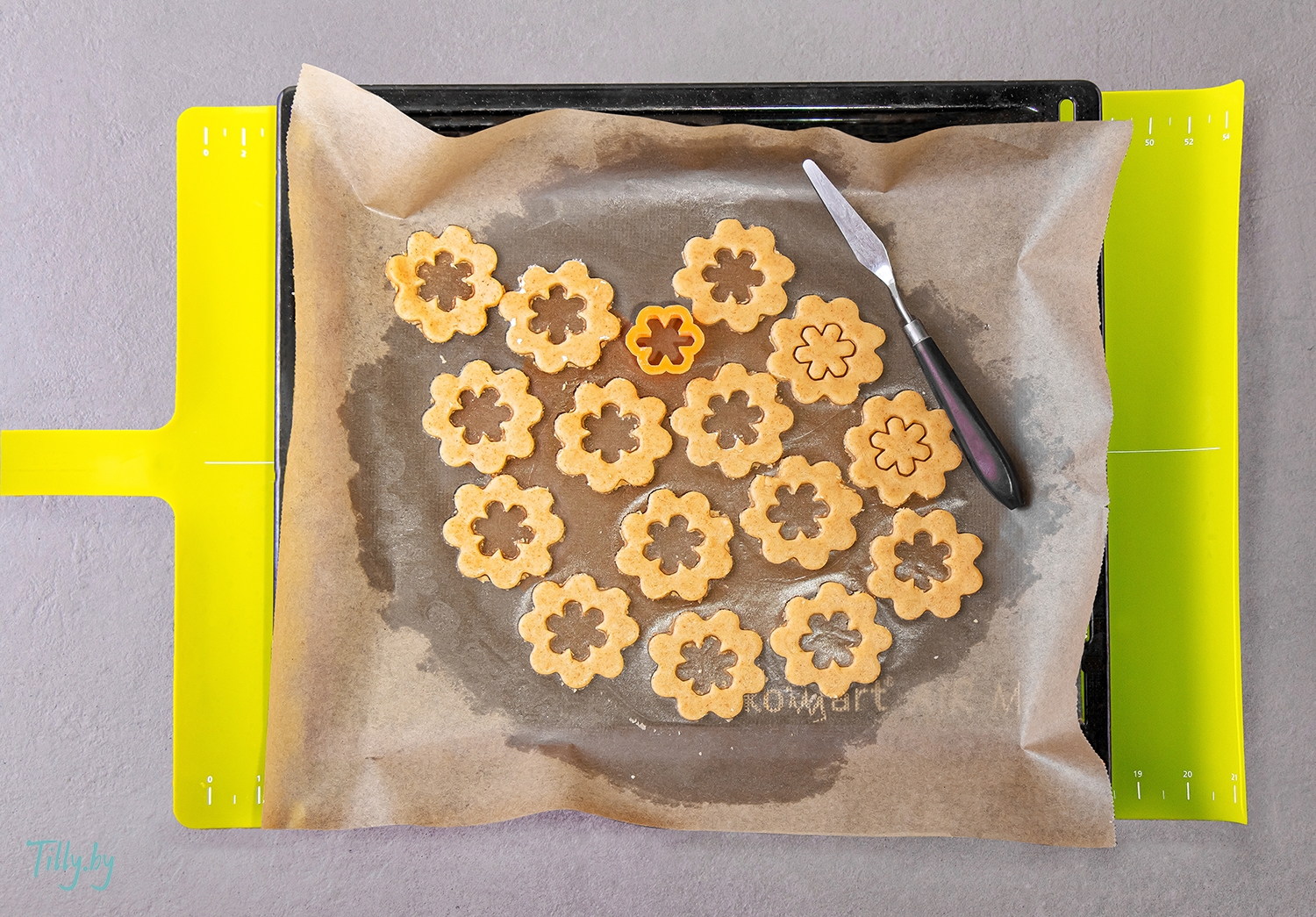 Удалите излишки теста уже на противне, чтобы не повредить форму печенья.
